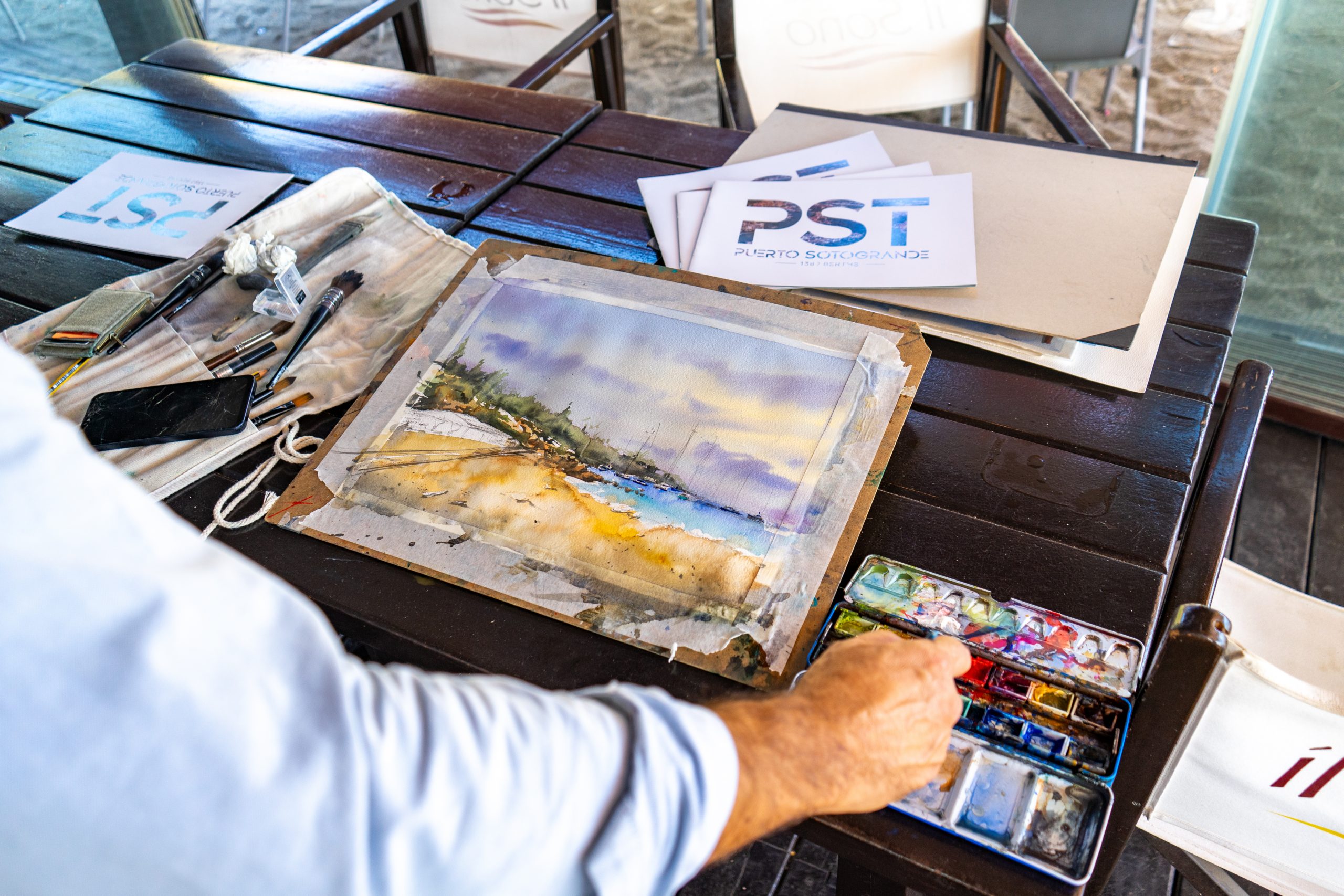 Sotogrande, 24 de agosto de 2025.- La ruta artística “Mirando al Mar y por el Mar” que organiza Puerto Sotogrande y Fundación Navega continúa su itinerario estival con una nueva sesión celebrada en el Chiringuito Il Soño, que acoge una jornada de pintura en vivo a cargo del acuarelista Paco Hernández.