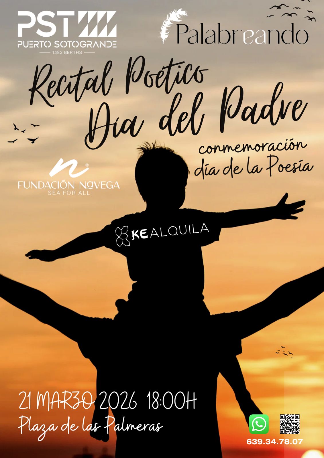 Sotogrande, 1 de marzo de 2026.- ‘Palabreando. El arte de escribir’ y Puerto Sotogrande organizan el próximo 21 de marzo de 2026 a las 18:00 horas un Recital Poético en la Plaza de las Palmeras, una iniciativa cultural que conmemora el Día del Padre y el Día Internacional de la Poesía en un formato abierto y participativo, donde también colabora Fundación Navega.