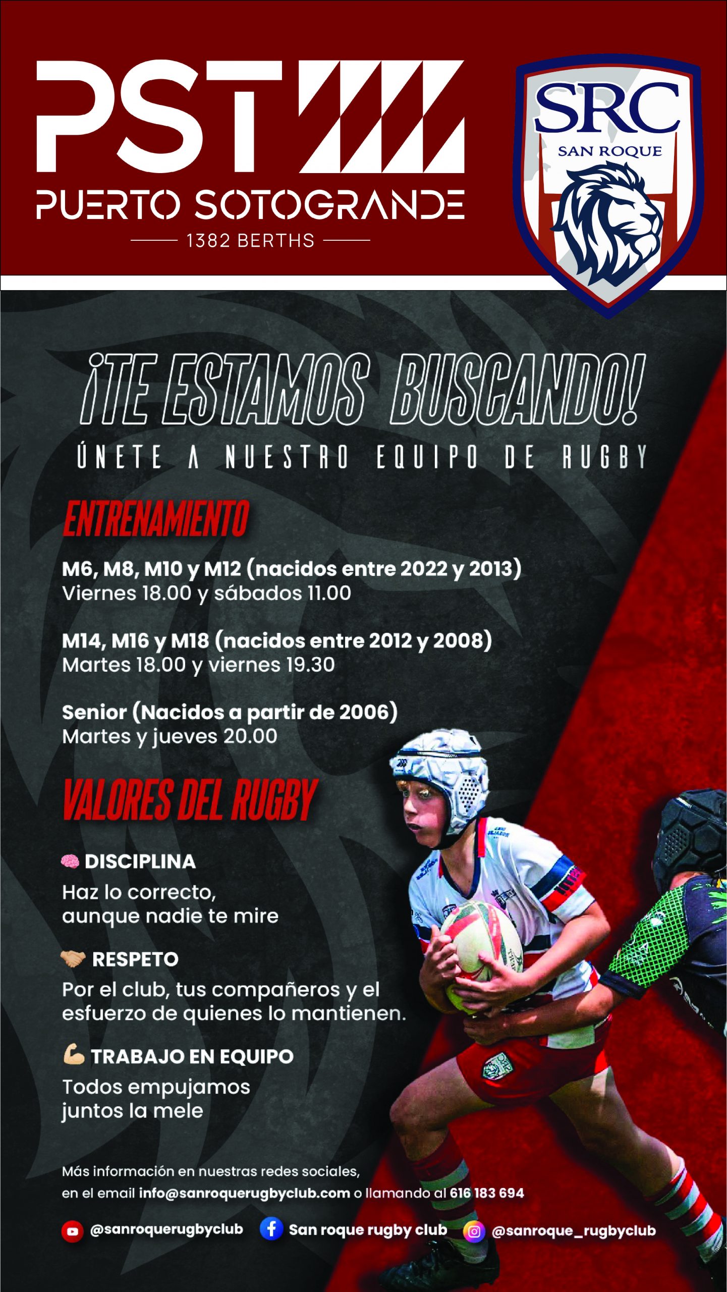 Las familias y deportistas interesados pueden obtener más información sobre inscripciones y entrenamientos a través de las redes sociales oficiales del San Roque Rugby Club o en el correo electrónico info@sanroquerugbyclub.com.