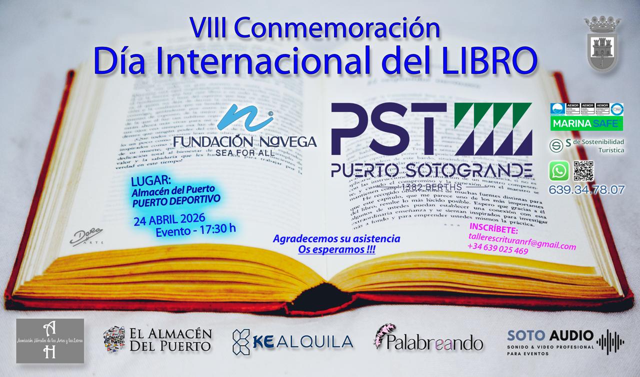 Sotogrande, 6 de marzo de 2026.- Puerto Deportivo Sotogrande y Fundación Navega junto a la ‘Asociación Hércules Cultural de las Artes y las Letras’ y ‘Palabreando. El arte de escribir’, organizan el próximo 24 de abril de 2026 a las 17:30 horas un acto conmemorativo con motivo del Día del Libro en la Plaza de las Palmeras, generando de esta manera un espacio cultural y literario abierto a todo el público que esté interesado en asistir en pleno corazón de la marina sanroqueña.